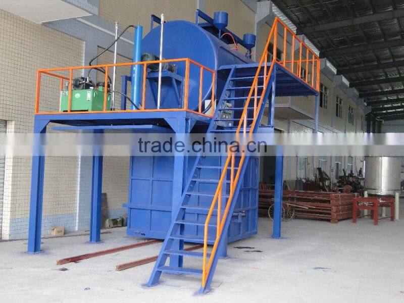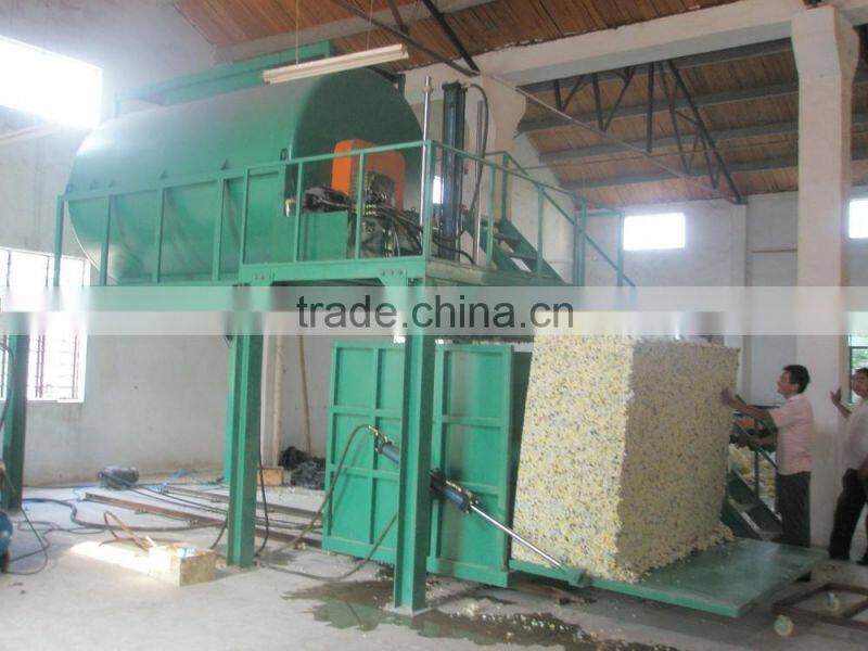 This machine is mainly used to crushing foam has been mixed with glue, then through the mould, pressed by the hydraulics system, the corresponding density of the regeneration of sponges required. The machine has a stirring, mixing, compression molding a set of assembly line and production efficiency. Choose to use the automatic steam mould, the production efficiency 6 times.