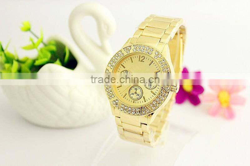 2016 High Quality Brand Women Watch Luury Gold Plated Female Dress Wristwatches Quartz Watches