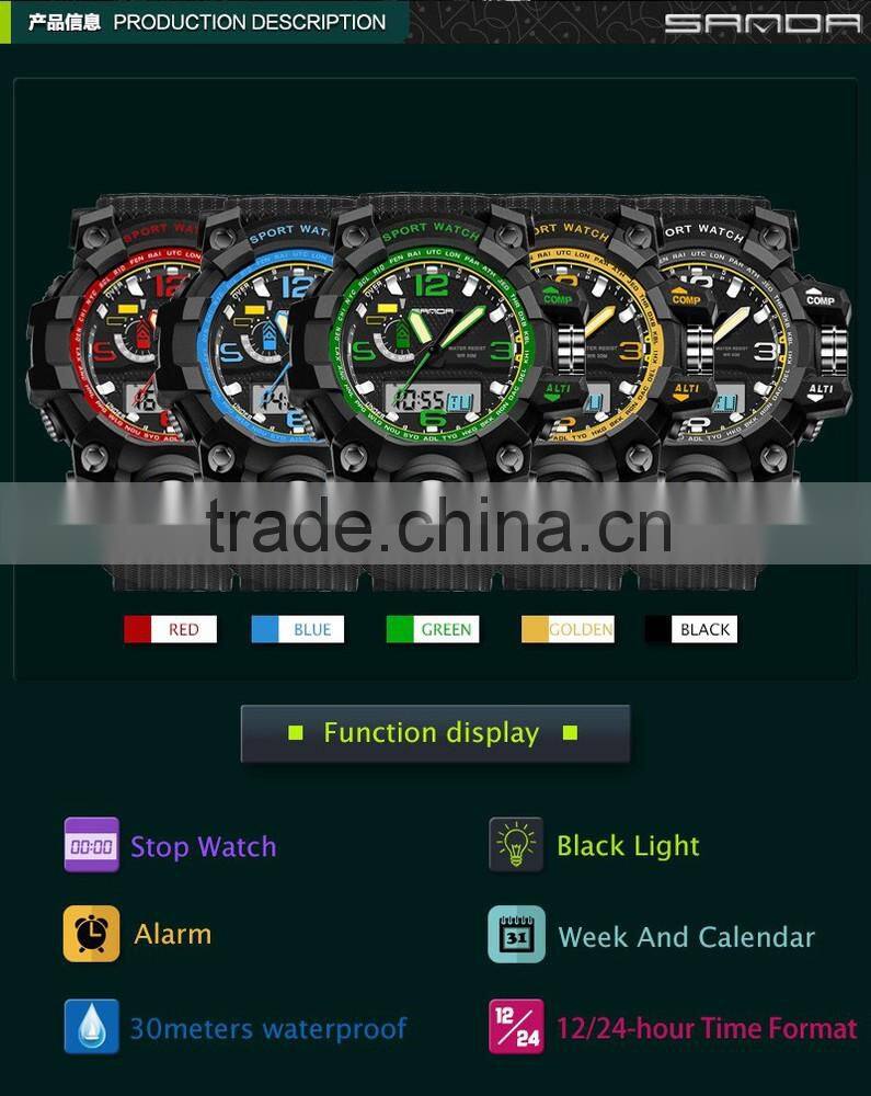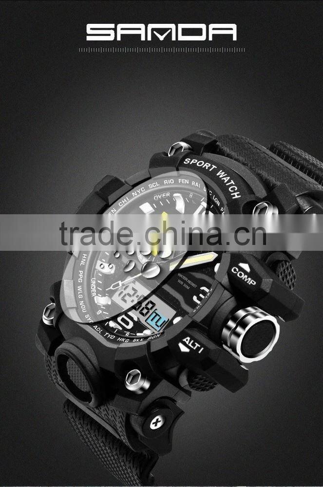 SANDA Brand 2016 New Fashion Casual Wristwatch Men Sports Military Watches Shock Men Luury Analog Quartz Led Digital Watch