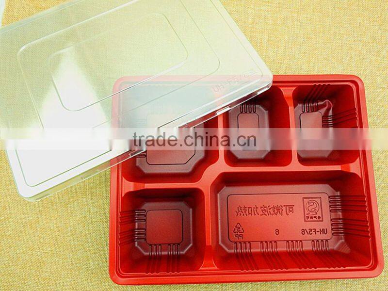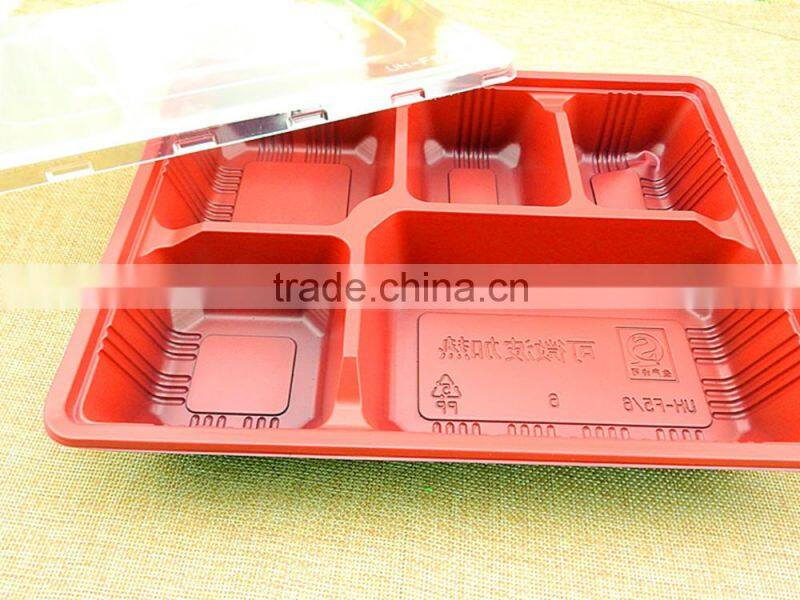New PP Plastic Five Compartment Takeaway Packaging Food Container Tray With Clear Lid