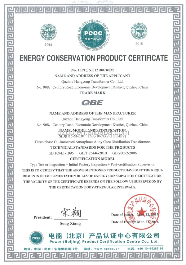 QuZhou HangYong Transformer Co., LTD is located in QUZHOU City green industry gathering area. The company predecessor is the QuZhou transformer factory, founded in 1967. In 1998, through enterprise restructuring, asset restructuring, constantly strengthen management, research and development, production, coruscate new vitality. At present, the company covers an area of 75000 square meters, construction area of 25000 square meters, total assets of 280 million yuan(RMB), has more than 300 employees, annual production capacity of 6 million kVA. In 2014, the company achieve sales of 350 million yuan, tax 9th in agglomeration area, and win the "2014 annual Quzhou City tax 30 strong enterprise".