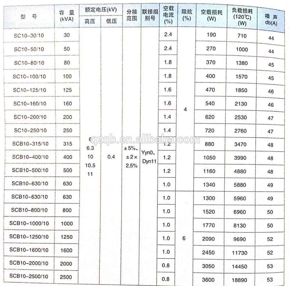 SCB10 Three Phase Dry Type Distribution Transformer Step Down Distribution Transformer 10kv Distribution Transformer