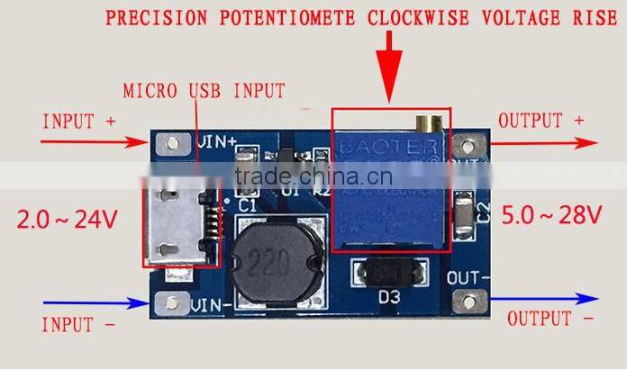 DC-DC step up module input wide voltage 2 / 24V to 5/9/12 / 28V adjustable