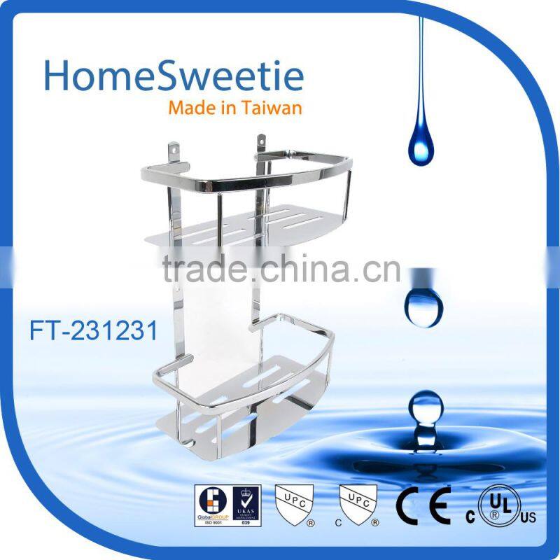 Stainless Steel L Shape Bathroom Corner Wall Shelf for Hotel and Home Made in Taiwan