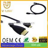 Factory Price Full HD 1080P 3D Supported Hdmi to Micro Hdmi Cable With Gold-plated