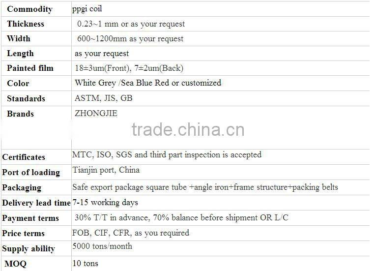 | Brand Name | Zhongjie ppgi, Zhongjie ppgi | Model Number | 0.12-2.0mm*600-1250mm | |