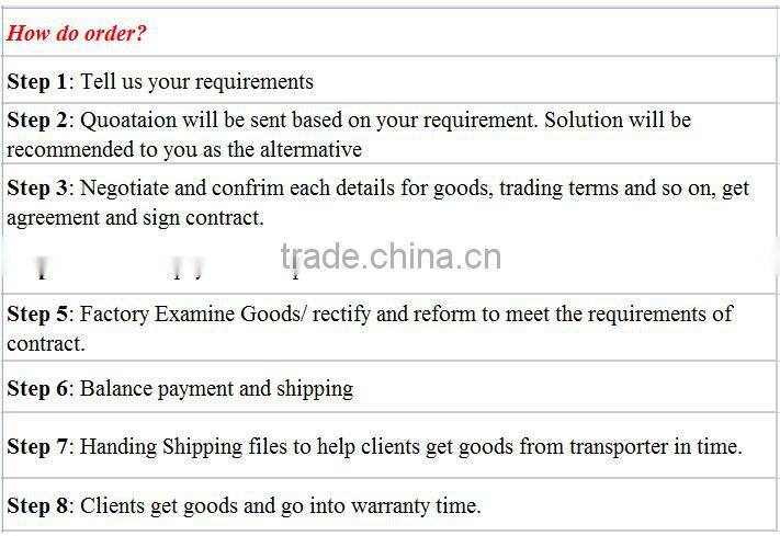 1. Payment: T/T,30% deposits; 70% balance before delivery. or L/C