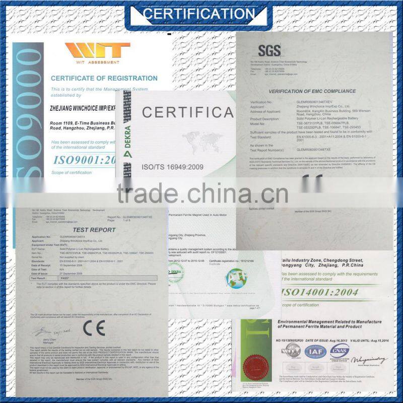Introduction to Zhejiang Winchoice Imp./Exp. Co., Ltd. Applying magnetic products, speakers, magnet materials, ceramics (structure ceramics and functional ceramics) and electrical machinery have been our emphasis since 1996. Our company, Zhejiang Winchoice, exports more than 85 percent of our output to Europe, the US and Southeast Asia, and has a total annual sales volume of over USD30 million. Strong Technical Support Here at Zhejiang Winchoice, our team of 25 engineers cooperates with one of Mainland China's leading universities, which provide us with expert technical solutions and technicians to handle your OEM needs. We develop new products in about 90 days. Technical know-how is the reason why we've developed 20 percent of our machinery in-house, including NC and linear-cutting machines. Capacity Our 20,017-square-meter factory, equipped with three assembly lines for magnetic products and staffed by more than 500 employees, can accommodate your volume orders. Dedicated Service 25 trade staff -- all with more than 15 years of experience -- can help with logistics, insurance and customs documentation for a smooth transaction. If you order from our standard product lines, we can deliver your items in 10 days. Contact us Visit our showroom now to see what we can offer for your market, and then call us today with your sourcing requirements.