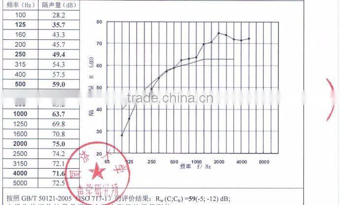 Core technology of sound insulation panel is derived from new polymer materials in interlining. it can compound any two pieces of board to develop a series of multi-functional sound insulation panels, including waterproof sound insulation panel, fireproof sound insulation panel, anti-shock sound insulation panel, electromagnetic wave shielding sound insulation panel (information eavesdropping-proof), etc.