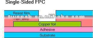 A flexible printed circuit (FPC) having a single conductive layer, generally made of copper foil. A Standard optional FPC is available that allows contact with the conductive layer from both sides .