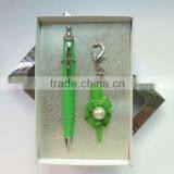metal mini ballpoint pen with keychain and mini torch with keychain packed in a gift box