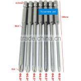 7size=one Set 100mm Length Magnetic Long Hex Cross Head Screwdriver Bits Set Electric Screwdriver AR-04