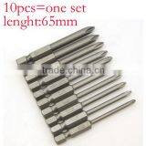 10Size/Set 1/4 Inch Hex Shank Magnetic Phillips Cross Screwdriver Bits Electric Screwdriver Head 65mm Length AR-13