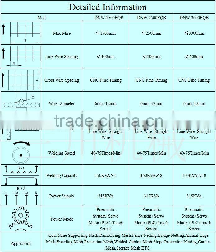 Models of choose for buy: the wire diameter, mesh, mesh width for commonly used models, this model is applicable to production for more than 50 mm mesh, wire diameter for 4-12 mm width 1000 mm, 1200 mm and 1500 mm, 1800 mm and 2000 mm, 2500 mm and 3000 mm (according to the net width the width of the selected models) volume mesh products. if there are differents of the specifications of the network, please in model is produced to provide screen of choose and buy wire diameter, mesh, mesh width can be models of choose and buy and tailored for the user