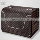Under clamshell box unique shape is designed for rear space features three boxes of car design. Velcro under the big box on the bottom of the small features and enhance the stability of the sorting box, the box will not fall even if the brakes; cover with flip-down, easy to cover in the trunk of the car open; Box the side with metal handles add a finishing tank dignity and aesthetics; inner part of the upper and lower case, upper garment bag and placing medical kits, lower level features two elastic grid device for solid objects. Cover features a grid mesh bag for easy placement of documents and information; top box, a pair of locks to prevent others to freely open. Password lock is simple and practical.