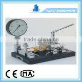 Hand pressure pump is a portable pressure pump.For field installation of instrument calibration in the industrial process and control of indoor use all kinds of pressure gauges.Can also provide pressure source correction table for pressure measuring instrument manufacturer.All kinds of pressure transmitter within every 60 M pa,Pressure sensor and all kinds of pressure gauges Check all available hand pressure pum.