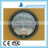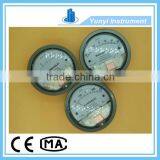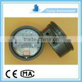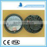 Standard industrial capsule low pressure gauge from the measuring system (including joints, bellows, etc.), transmission (including pull-bar mechanism, gear transmission mechanism), indicating parts (including pointer and dial) and housing (including case, bushing and tables glass) formed. The instrument is based on the principle of a bellows, measured in the medium under pressure, the free end of a corresponding elastic deformation, and then through the transmission gear mechanism and to enlarge, the pointer is fixed to the gear shaft will be measured by value indicated on the dial. There are zero device, you can easily adjust the zero position.