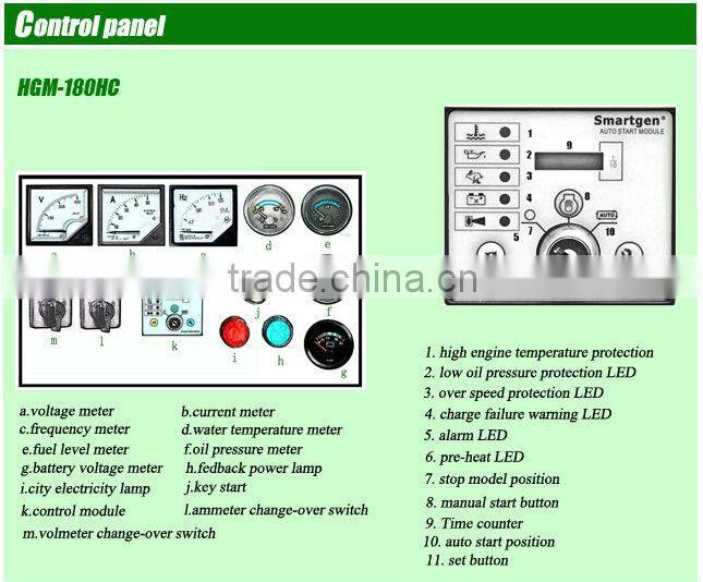 failure by LED on the front panel, Such as Over speed, Low oil pressure, High water
