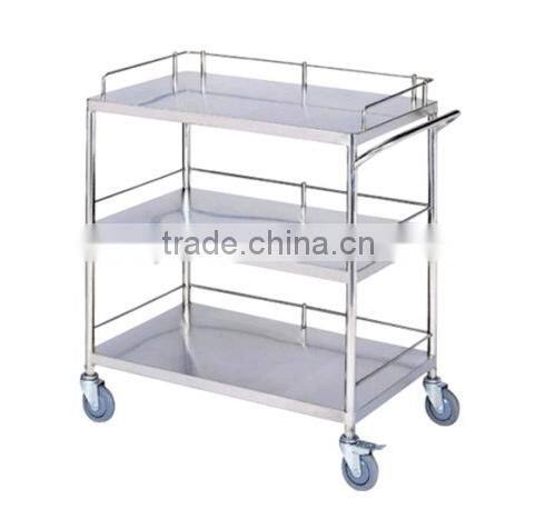 Home > Products > Hospital/Medical Trolley > China Factory Hot Sale Stainless Steel Instrument Trolley 3-tier Shelf Hospital Cart