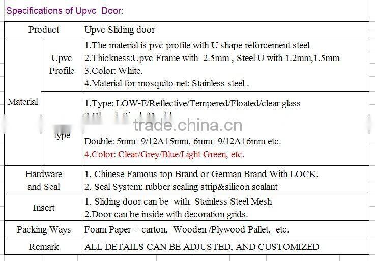 | Model Number | Upvc sliding Door | Open Style | Sliding | |