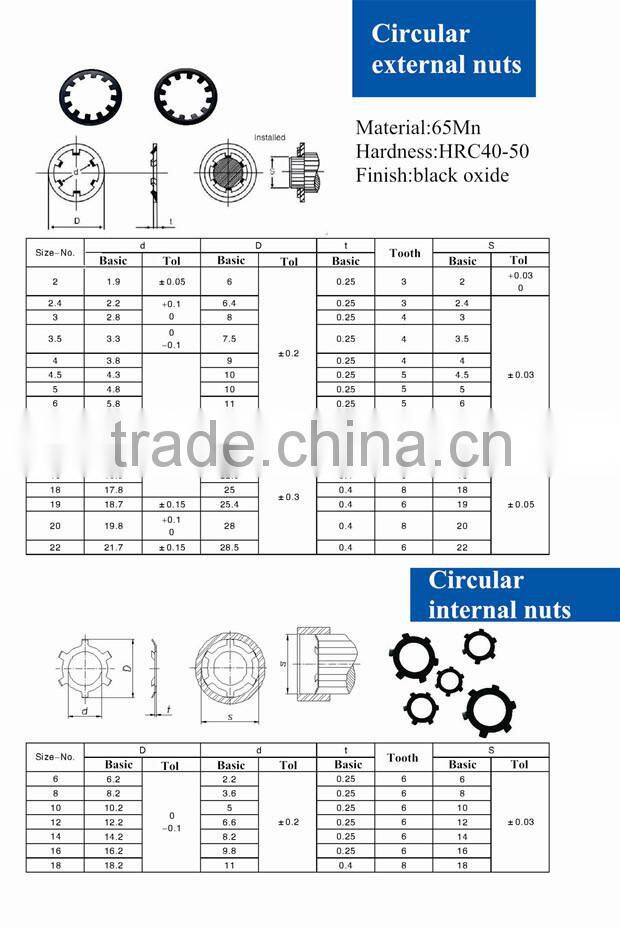 - Main products: all kinds of retaining ring for bores/shafts; gasket series(e.s. wave,curved,tooth lock,flat,cone washers and so on); torsional and compression spring; standard and non-standard metal stamping parts.