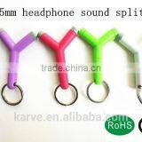 2014 High Quality 3.5mm Optical Audio Splitter Keychain Dual Audio Splitter for Cellphone