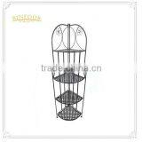 Antique Wrought Iron Metal 3 Tier Corner Garden Shelf Holders For Home Storage Racks