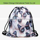 Waterproof 3D Printing Cat Design Drawstring Beach Backpack