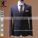2016 High Class Slim Fit Black White Stripes Men Formal Business Suit