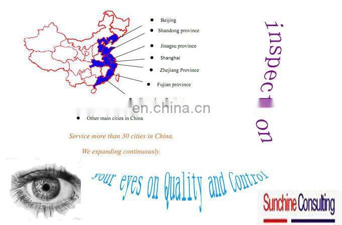 Sunchine can help you check products quality before shipping, to check workmanship quality, raw materials, product appearance, weight check, size measurements, functionality assortment, accessories, logos, labelling and marking, packaging, packing and other special requirements depending on the product specifications and the export market.