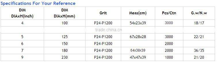 Abrasives material: Silicon carbide, alumina and zircon corundum;