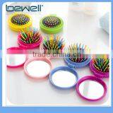 Small Portable Rainbow Folding Massage Comb Round With Mirror Travel Brush