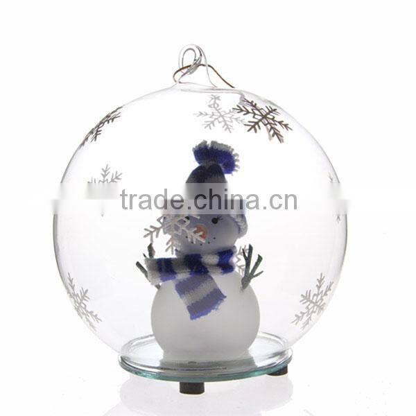 Clear Glass Ball With Snow Man Wear Scarf Inside