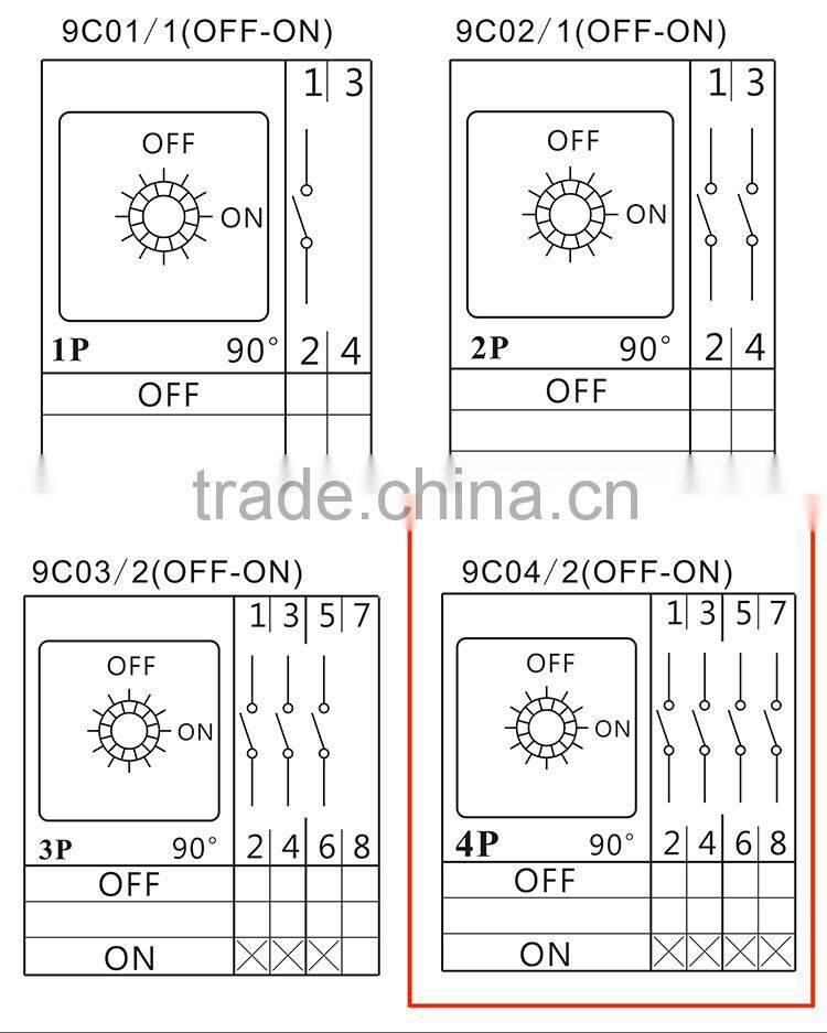 LW26-10X 0-1 4P 10A CE Certificate Universal Side Insert Isolator Switch
