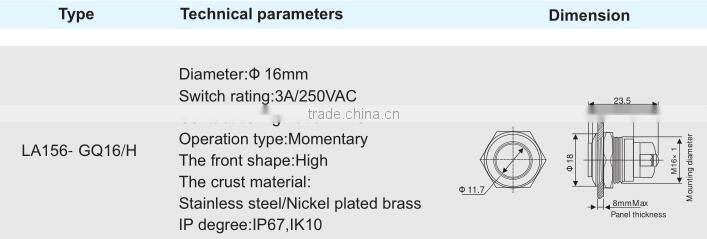 LA156-GQ16/H Durable Using Low Price 16m Momentary Pushbutton Switches
