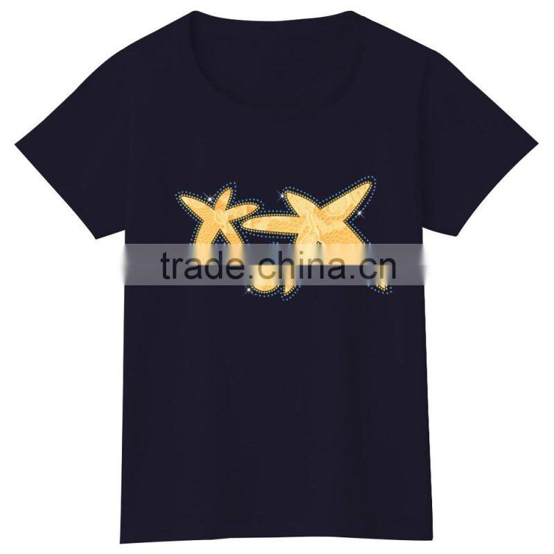 2016 Custom 100% Cotton Sublimation Hot Fix Women t Shirt Wholesale Cheap