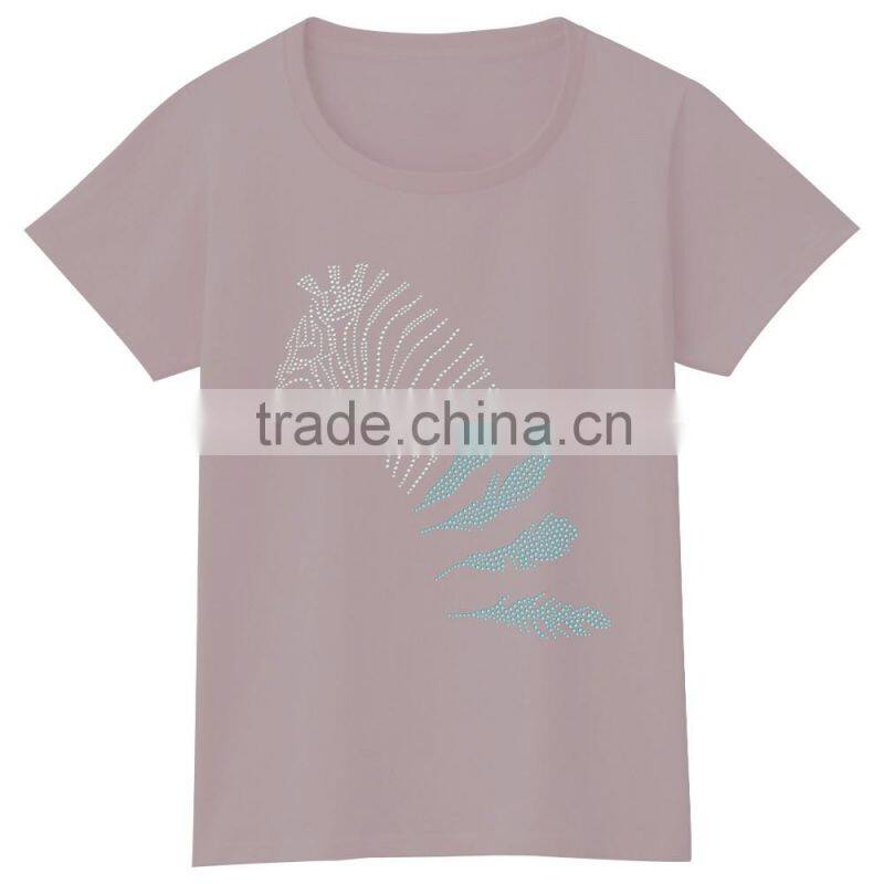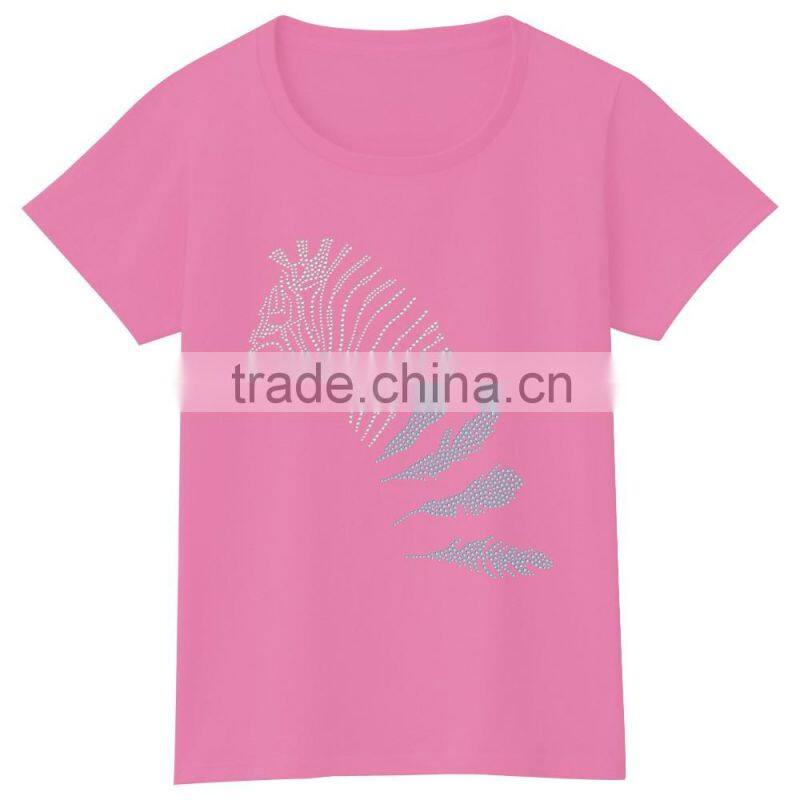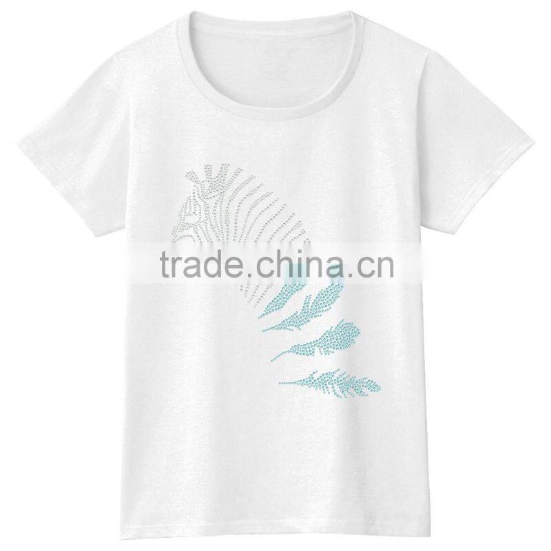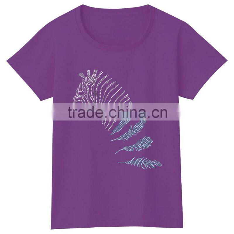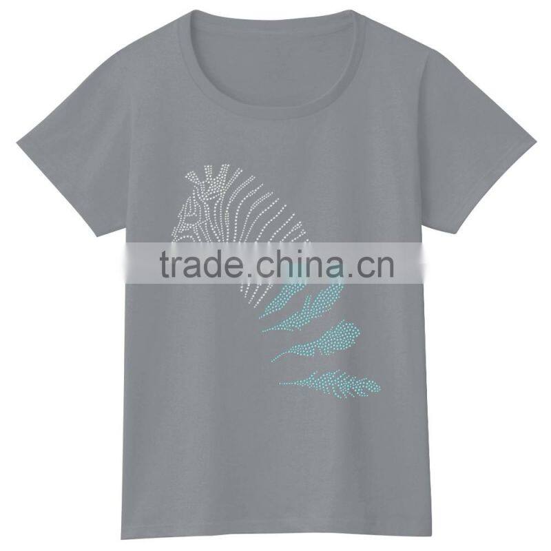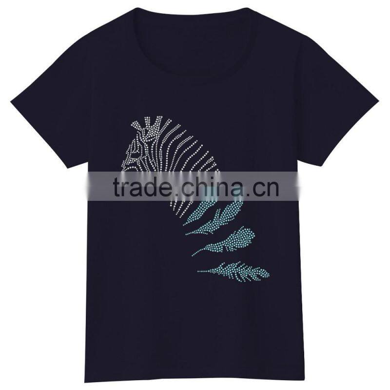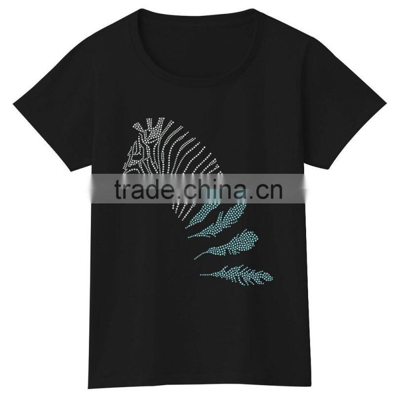 Wholesalers Fashion Design ZEBRA Hot Fix Stones Women t Shirt
