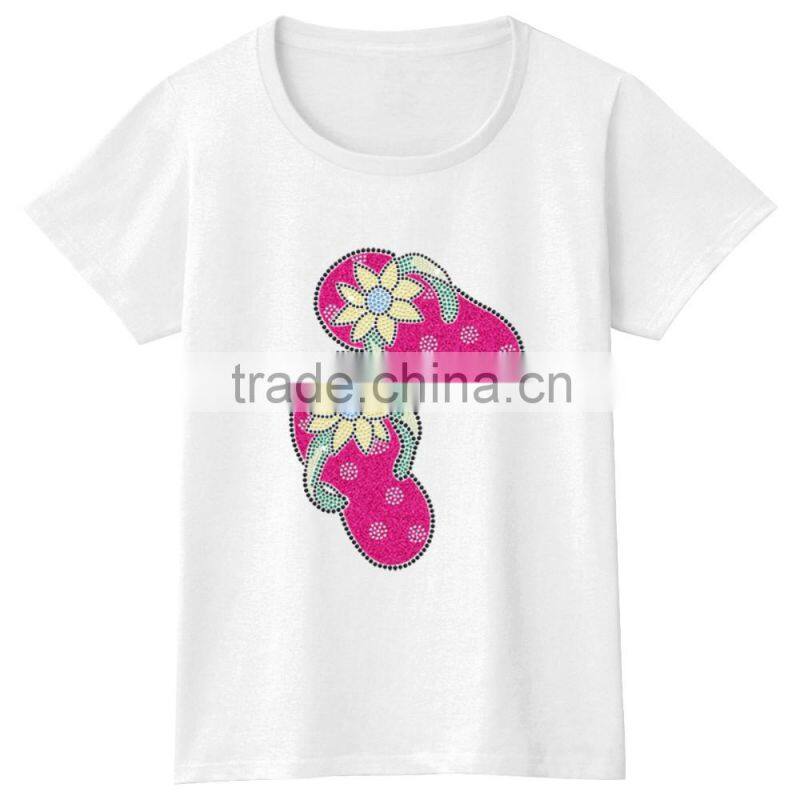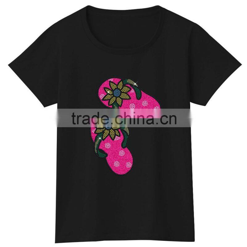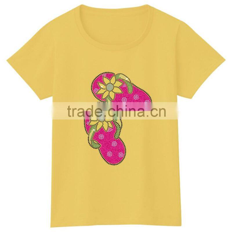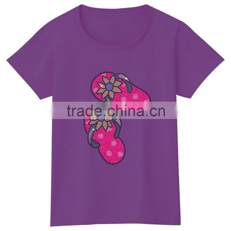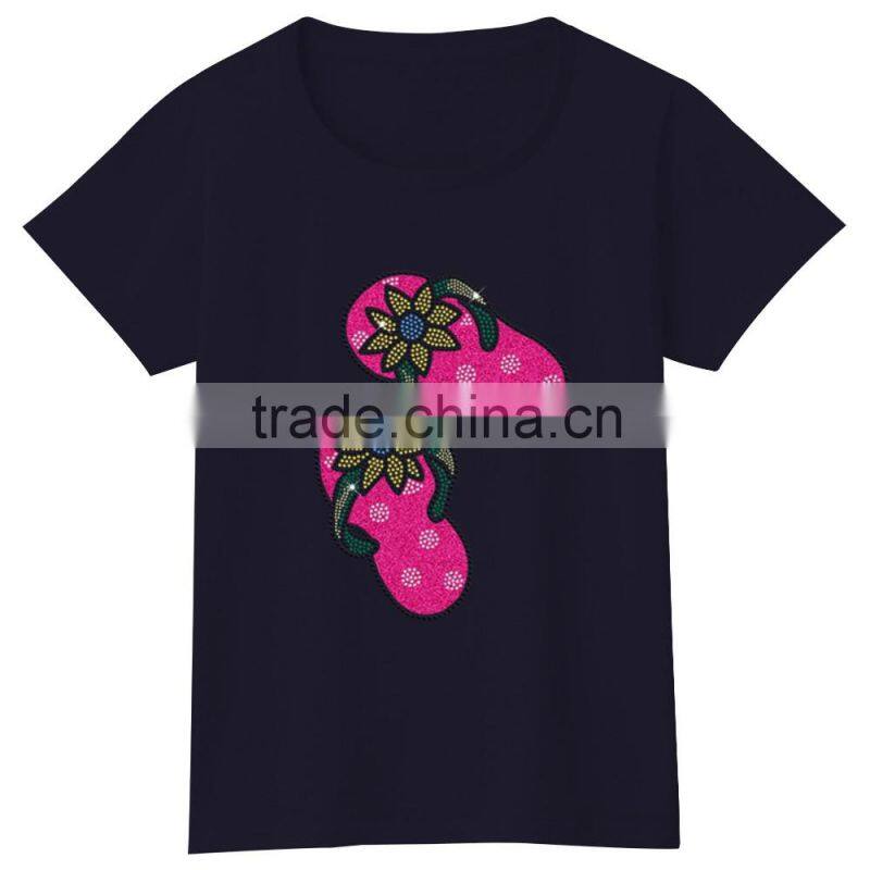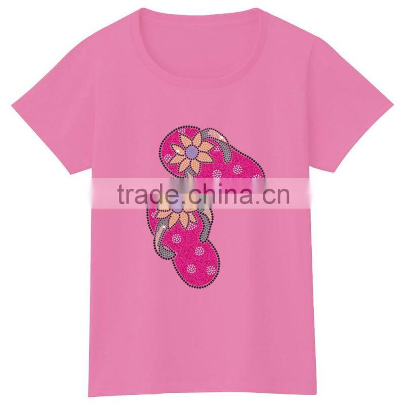 2016 High Quality Rhinestone Design Short Sleeve Cheap Tshirt for Girls