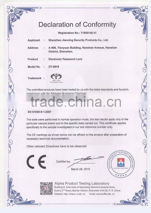 Shenzhen Jianning Security Products Co., Ltd., founded in 2006, is a leading domestic special use locks, hardware accessories products sales and services, to provide customers with more than 200 kinds of security products, production, installation, and maintenance and other full service and excellent customer service guarantee. Our products are widely used in major bank vault door, safe deposit box, ATM machine, safe ,gun cabinet, file cabinet confidentiality ,hotel and luxury residential door ect.