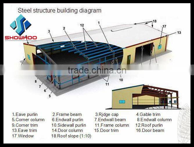 Industrial steel structure warehouse, workshop, hangar, garage, chicken shed, container houses, prefabricated houses, sandwich panels, corrugated steel sheet, welded H steel, C/Z purlin, etc.