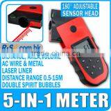5 in 1 Ultrasonic Distance Meter Laser Metal Stud Detector AC Scan Area Volume