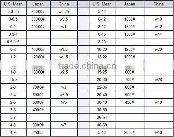 | Usage | Processing of natural diamond, gem, stone, glass, ceramics, etc | Abrasive Grain Sizes | 0-0.25/40-60 |