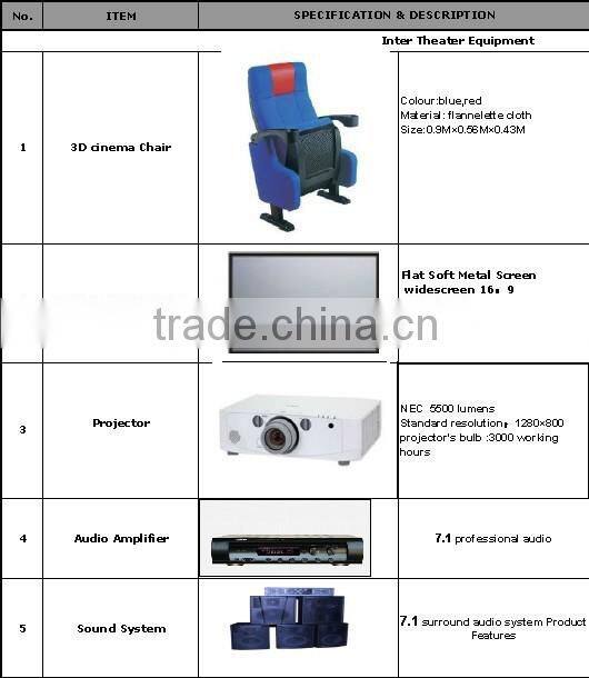 And also can provide 5D 7D 9D 12D cinema equipment: