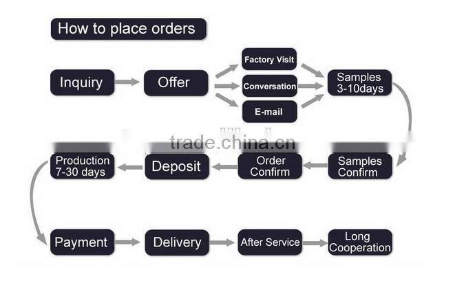 2. For large order, usually 30% deposied in advance and 70% blance before shipment. or against by b/l if sea shipment.