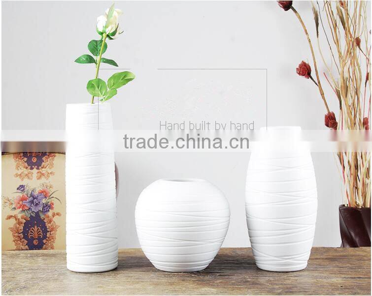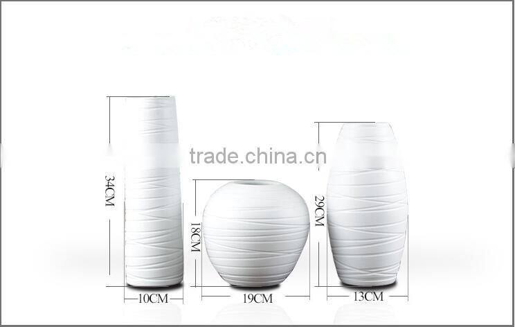 2016 Hot Sell Modern Simple Plain Cermaic Art Minds White Vase Set for Hotel Decor