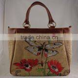 100%Jute Lady Tote Bag With Dragonfly Embroidered