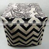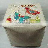 100%C Pouf With Flower Print and Butterfly Embroidery