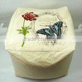 Linen/cotton Pouf With Flower and Butterfly Emb.