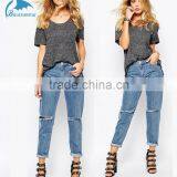 High Quality Wholesale Womens Denim Low Rise Oversized Boyfriend Jeans With Roll Hem & Ripped Knees Quality Choice