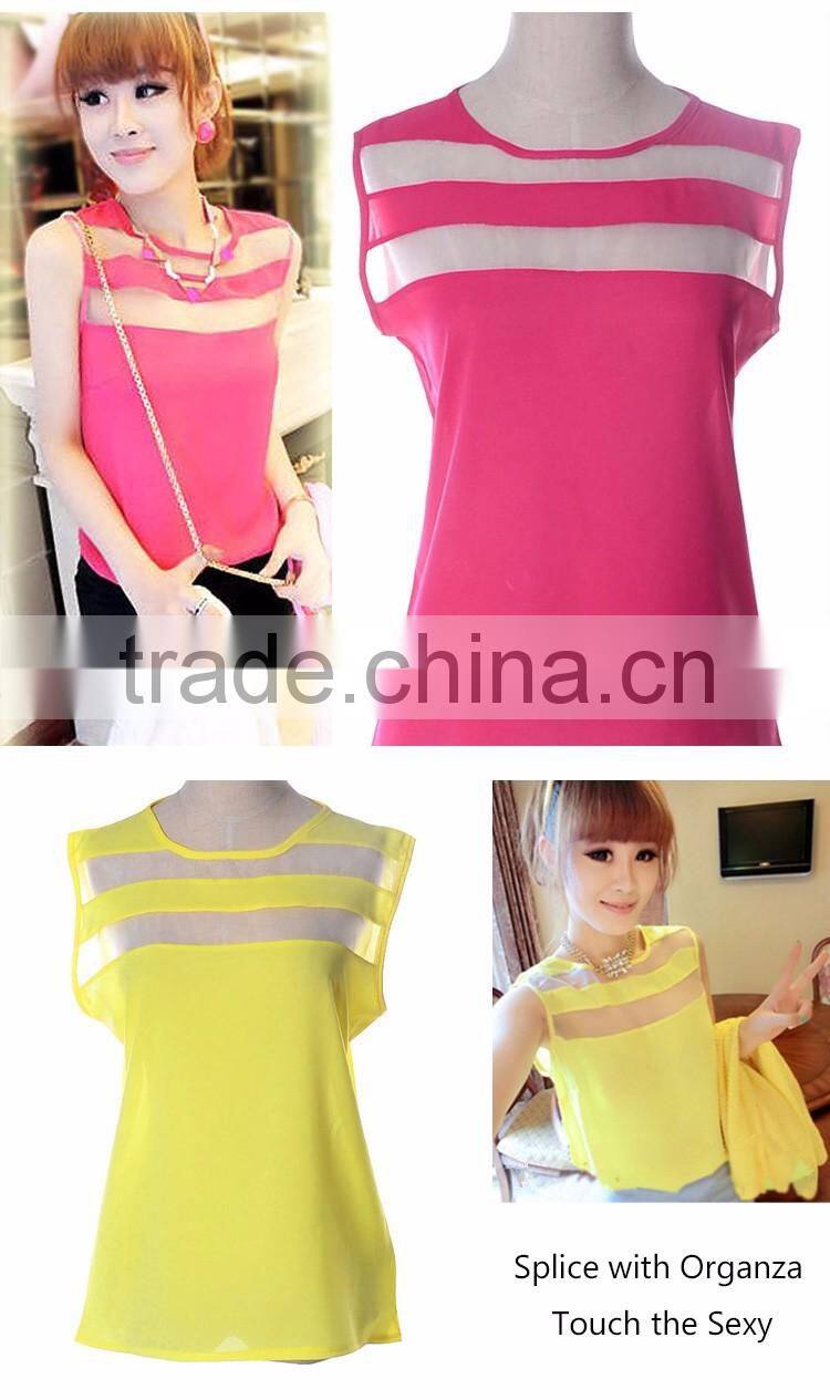 Tight 2016 Fashion Sleeveless Classic Flower Chiffon Ladies Tops